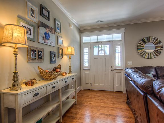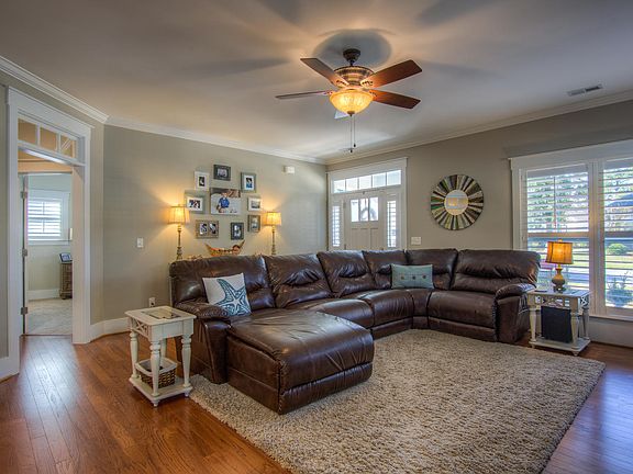 Craftsman architecture with warm coastal feel in the desirable Porter's Pointe neighborhood! The Abigail home boasts many features including large first floor master suite with coffered ceiling, spacious walk-in closet, separate tiled shower and tiled tub surround, natural gas fireplace with custom built-in shelving on both sides, oak hardwoods for first floor, ceramic tile in all 3 bathrooms and utility room, 42'' cabinets with granite countertops and a ceramic tile backsplash, built in bench in utility room, screen porch off the kitchen, crown molding, craftsman trim package, James Hardie siding and plantation shutters throughout. First floor guest room with full bath. Upstairs are two additional guest rooms, full bath and a bonus room. This home offers many other custom features inside