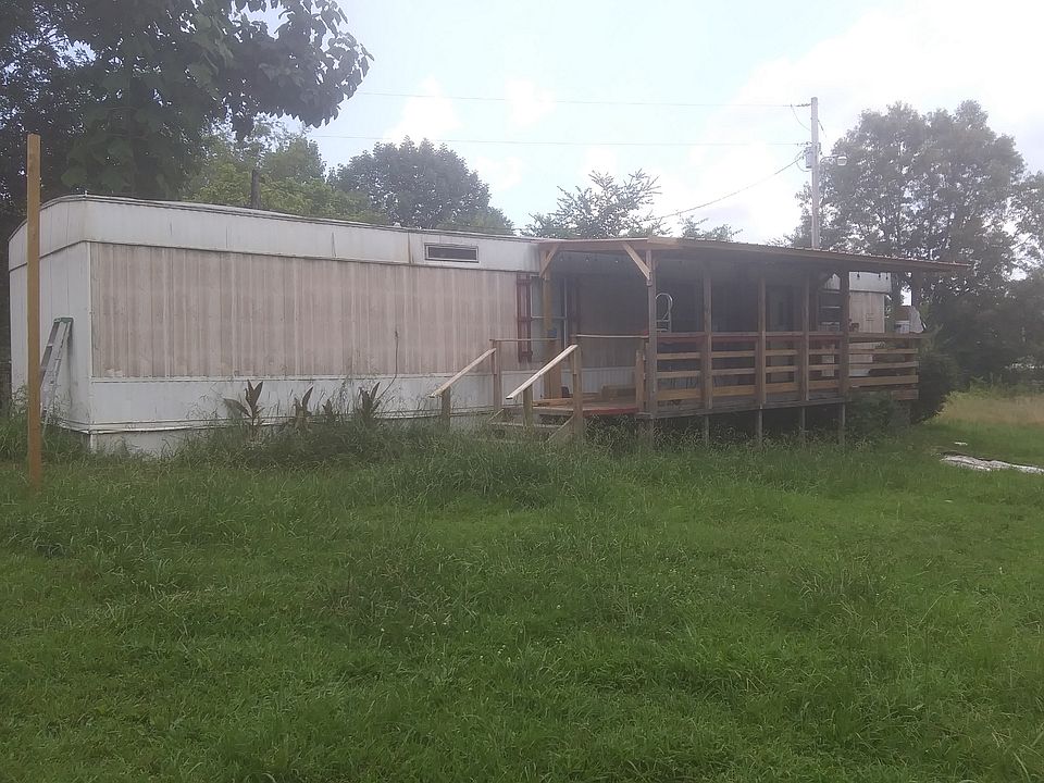 This mobile home is on a nice lot that could use some cleaning up. The home has had some repairs done but still need others but is quite livable as is.