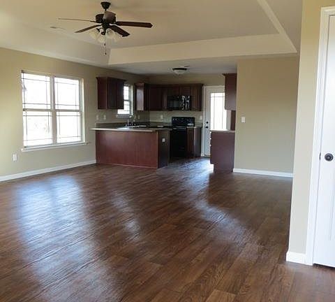 Great like new starter home. Huge Greatroom open to kitchen, large oantry, 3 bedrooms, 2 baths, walk-in closets, walk-in laundry room with cabinet. Covered patio for grilling. Nice size fenced yard backs to tree line. Very good lot, one of the best in the subdivision.