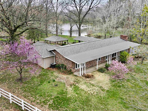 Cozy ranch on 10.5 acres. Well maintained and nicely updated. New roofs installed on home and all structures in 2020. This comfy ranch home features a beautiful wooded lot and rolling horse pastures, a 30 x 40 horse barn and a 1 bedroom bunkhouse apartment. Check out these rolling hills with white vinyl fencing, flowering trees, large oak trees and a stunning view of the neighbor's pond. This home also features 3 gas fireplaces including one in the master suite. Complete with replacement windows, updated kitchen cabinetry and bathrooms. Other features are solid interior doors, attic fan, covered pavilion, asphalt driveway, crown moulding, and a fenced in back yard for kids or pets. Approximately 5 acres of mature hardwoods completes this beautiful ranch home.