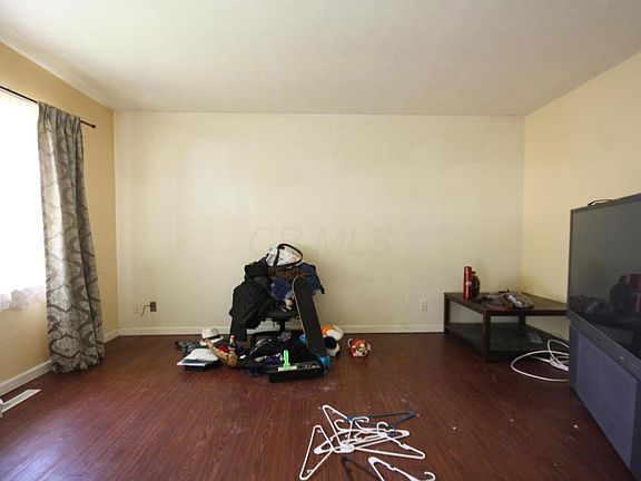 Great buy in Gahanna schools! Large rec room with surround sound. Beautiful eat-in kitchen with gas range, dishwasher and refrigerator. 4 bedrooms and den/possible 5th bedroom. Bright kitchen and family room with wood laminate flooring. Beautiful tile and shower door in full bathroom. Large fenced yard and patio. Needs some paint and new carpet.