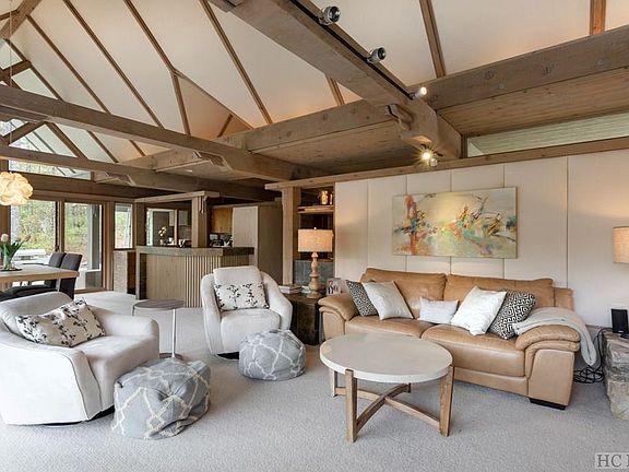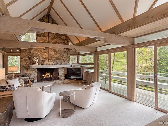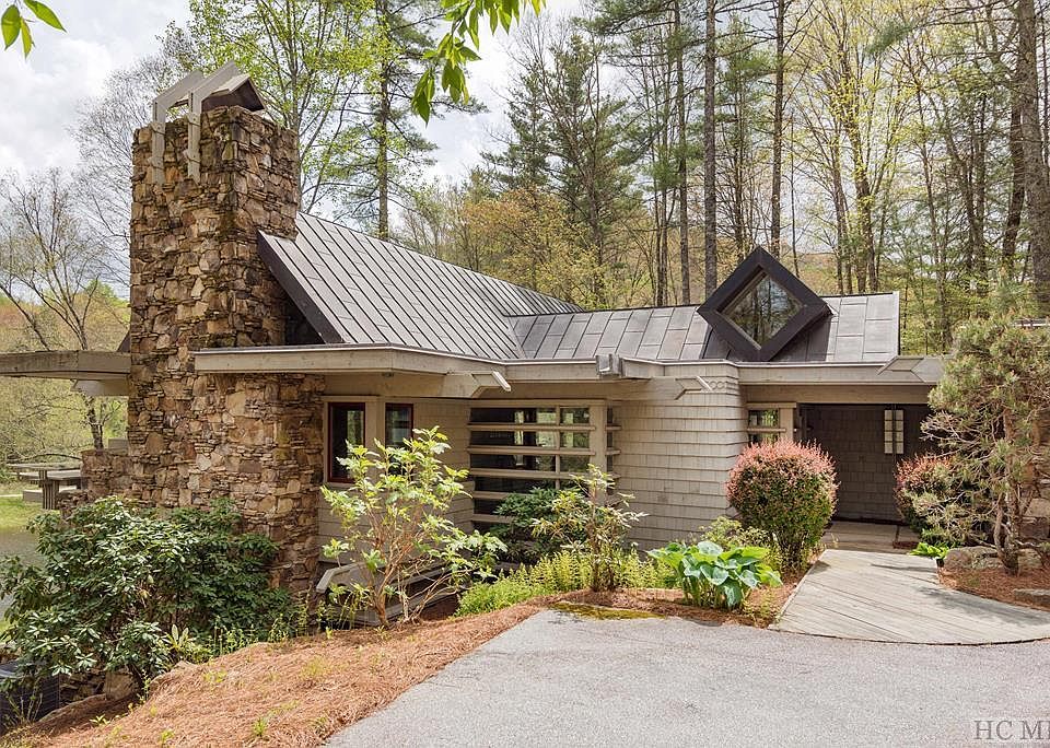 This spectacular, one-of-a-kind contemporary home was designed by well-known local architect Dan Duckham. Blending beautifully with the peaceful landscape, the post and beam home offers architectural details such as two stacked stone massive fireplaces made with Tennessee sandstone, decorative cedar shingles, and a handcrafted European-style roof made with Swedish copper. Floor-to-ceiling windows display nature's artwork which surrounds the main living area, and the deck beckons one to prepare dinner on the outdoor built-in grilling station while admiring the serene pond. This home is in a convenient location close to Mountaintop Golf & Lake Club and the shopping and dining of Cashiers.