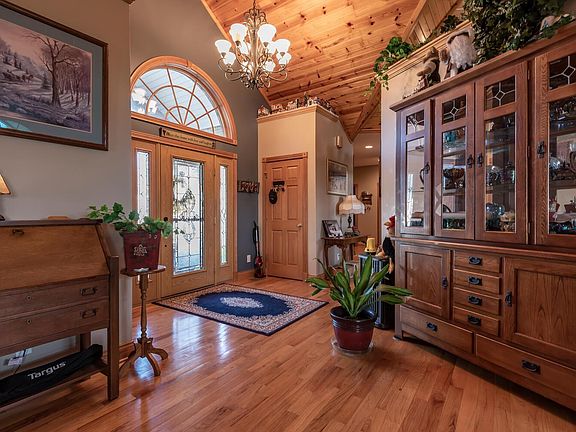 - Ceiling Fan(s), Breakfast Bar, Kitchen Island, Central Vacuum, Walk-In Closet(s), Cathedral Ceiling(s), Entrance Foyer, Open Floorplan, Ceiling-9+, Main Level Bedroom Suite, Stand Up Shower, Tub and Separate Shower, Split Br Floor Plan, Twin Sink Vanity, Utility Sink, Natural Woodwork, Custom Cabinetry, Jet/Garden Tub