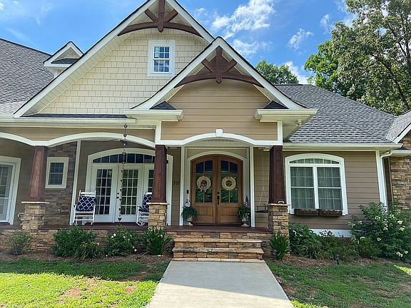 If you are looking for privacy, peace, acreage, and a gorgeous stately home, look no further! This elegant Crafstman is nestled among 7 tranquil wooded acres, where the shaded driveway will lead you to this beautiful Amicolola! Wooden arch beams decorate the gables of the cedar-shake peaks covering a front porch replete with swing and rockers, while stone accent walls warmly contrast with the large double-arched front doors. Fruit trees dot the landscape along with raised garden beds, and beautiful flowering foliage. A short walk will sooth your senses with the sounds of the gurgling creek flowing through the back of the property. Upon entering the front foyer, you will find French doors leading to the dining room currently used as an office, with yet another set of French doors providing even more natural light into the dining room/office. Passing through the foyer, you can take the small hallway to the right where you will encounter both a secondary bedroom with its own ensuite and walk-in closet as well as the spacious master suite, featuring tray ceilings and a sitting area. The master ensuite features luxury vinyl wood style plank flooring, walk-in shower, granite-topped double-sink vanity, room-sized walk-in closet outfitted with custom closets and washer/dryer hookup. Passing through the foyer to the left, you will be greeted by the freshly painted formal living room boasting a tray ceiling; large, stone and wood fireplace with gas logs, and barnwood-shuttered pass-through opening to the gourmet kitchen containing a farmhouse sink in the 13X5 foot island along with a rustic reclaimed-wooden hood over the 6-burner gas range with pot filler. The kitchen also flaunts stainless steel appliances; double oven; butler pantry/coffee bar with 2nd sink and built-in microwave cabinet; and an extra-large walk-in pantry with storage galore. Behind the kitchen along the back hallway, are two more bedrooms with one walk-in and one double-size closet and 1 full bath. Sitting just off the kitchen is the family-friendly hearth room, warmed by a floor-to-ceiling stone fireplace with wood-beam mantle perfect for hanging stockings. Just to the right of the hearth room sits the dining area spacious enough to easily accommodate a 12-seat farmhouse table, perfect for those large holiday gatherings. From the dining area, French doors open to a massive screened-in porch with storage closet. Behind the kitchen, you will find the laundry room with a sink in granite countertops covering custom cabinets along with built-in shelving. Just outside the laundry room is the mudroom with wainscotting that also leads to the three-car garage. Two sets of stairs from the mudroom lead to a 1,200 sq. ft. unfinished bonus room over the garage, while the other set takes you to the partially finished basement, containing 3 more finished bedrooms with walk-in closets and 1 full bathroom. There is yet another approximate 2,500 sq. ft. of unfinished storage space in the basement, currently roughed-in for future living spaces, in-law suites, apartments etc. Again, this gorgeous Amicolola estate has space galore and offers it all! (Realtors considered)