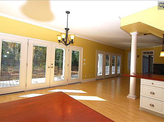 Cape Cod styled home w/ nice open floor plan w/ porch areas overlooking a large private backyard area. Double owner suites w/ one down & owner suite up has lg walk out balcony porch/ Sun deck, lg walk in closet & Lg private bath. Florida room with double sided fireplace that backs up to the huge great room that includes entertainment centers above fireplace. Lg kitchen that opens to the great room. Rear covered porch extends the length of the house. Great lcoation convenient to all ammenities. This home is MUST SEE!