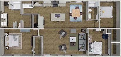 - Kitchen Island, Split Bedroom, Bedroom, Dining Area, Living Room, Master Bedroom