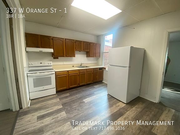 337 W Orange St #1 1 Bed 1 Bath - Go to www trademarlancaster com to fill out applications and set up showings This nice 1st floor apartment is ready to be your new home today! It has a nice sized living room and a spacious kitchen, fresh paint throughout. You also have shared access to the back yard. There is off street parking available right next door for a monthly fee. This apartment is located in a great west end Lancaster City location. This part of Orange St is quiet and nice but you are still very close and walkable to all downtown Lancaster City has to offer. Tenant pays electric (electric heat). Tenant is also responsible for a $45/month Resident Benefit Package, No pets. $50 to apply. Minimum 620 credit score required along with good rental history and income.