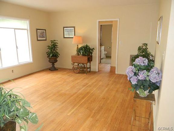 Meticulously clean, quaint cottage with Gorgeous Curb appeal, elegant wood floors, a nicely upgraded Custom Kitchen with a HUGE backyard and a double deep garage! Starts w/lush lawn & an abundance of flowers in a professionally manicured front entrance, then into an open floor plan accented by Rich hardwood floors even into the formal dining room surrounded by windows. Custom Kitchen has wonderful wood cabinetry w/ pull outs EVERYWHERE, a wal k-in pantry, Kenmore stovetop, range and vented hood, tile counters & backsplash, even a hideaway pull out cutting board. INCREDIBLE storage cabinets & workbench in garage(have to see to believe), next to a massive backyard that is your blank slate waiting for your personal dreams to come true: a huge garden, a play lawn or that gazebo you've been dreaming of. Even has a large patio area w/ a brick walkway! Vintage tiling in both bathroom s, new toilets, freshly painted throughout, pocket doors, new front door, 3 lighted ceiling fans, Linen closets, block walls all around, rain gutters, auto sprinklers and timers, even a separate laundry room inside with extra cabinets above! Light, bright and airy throughout, this home boasts good sized bedrooms and plenty of room to grow! Even all termite work has been done. A Gem!