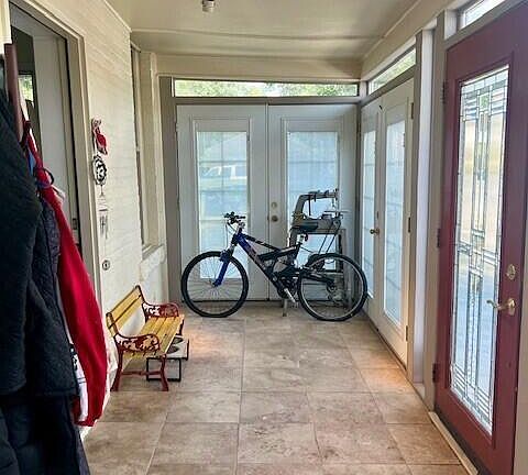 Lots of natural light flood this home with newer windows throughout. Wood stressed painted & tile floors. Two spacious bedrooms, 1-full tiled bath with deep tub. Eat-in kitchen, newer appliances, 2-enclosed porches offer abundant light, with a place to store extras and the heated back porch, a utility room has additional storage. A newer (1-yr) wrap around back patio for entertaining includes an outside bar area., gas fire pit and plenty of yard space for gardens. The mechanicals are in the very clean cellar. There is room to add a garage or carport, per the city.