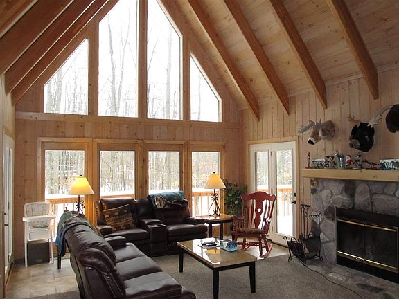 - FEATURES: Cable, Sauna, Near Snowmobile Trails, Range, Refrigerator, Central Air, Dishwasher, Garbage Disposal, Deck, Dryer, Washer, Cathedral Ceilings, Ceiling Fans, Wood Fireplace, Paved Road