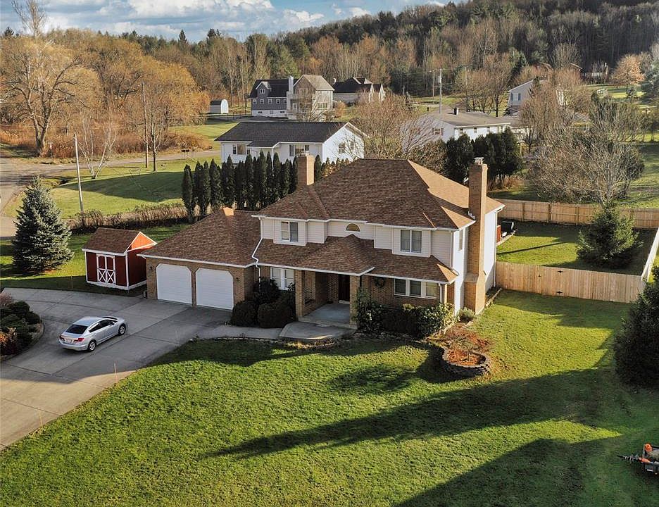 Immaculate, exceptionally well maintained, & spacious home, on a large private lot with spectacular curb appeal, located in quiet neighborhood. Fabulous sunsets & overall environmental beauty. Entryway features a chandelier and gorgeous curved staircase. Open floor plan w/1st floor bedroom & full bath, beautiful brick with vented fireplace & concrete mantel in family room, equally stunning fireplace in living room, & wood stove in huge finished lower-level area that also features a bonus room, which may be used as a 5th bedroom or office, with closet space, a room for storage, & a half-bath. Two bedrooms have walk-in closets, other bedrooms offer ample closet space, & master bedroom includes balcony, double vanity, separate whirlpool, & shower room. Lovely wood laminate & oak floors. Large circular concrete drive, fenced yard, & awesome views! New roof (2020), energy efficient boiler (2021) & water softener (2021) with warranties! A must see!