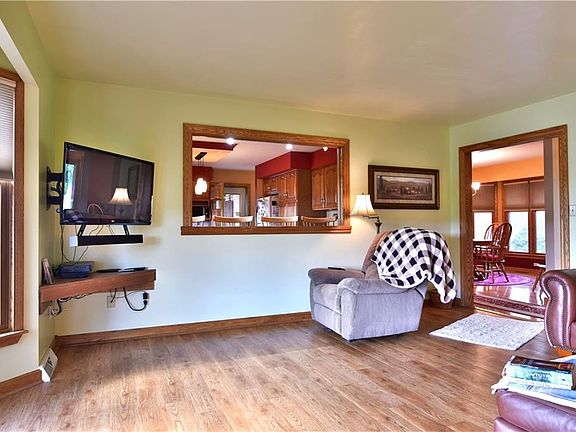 Revel in the amazing yard and three-bedroom living space that graces this all-brick Cortland ranch! This gorgeous property begins with an expertly landscaped plot of land, offering up multiple rock gardens, a finished and covered rear patio, and a concrete driveway that leads to the two-car attached garage. The elegant walkway leads to the formal entry way, placing yourself mid hall in the home. Your gaze will quickly affix to the nearby formal dining room as tall windows line the wrapping far wall. Hardwood style flooring runs below and continues into the illustrious, sun-filled living room as similar windows continue the onset of natural light. A large serving window peers into the kitchen where bar top seating joins an array of custom cabinetry and a welcoming center island. The tiled flooring sweeps around and into the first-floor laundry near garage and basement access. Down the main hall, a stunning full bath showcases its lavish tub and colorful wall treatment. The trio of bedrooms include the oversized master with walk in closet and full private bath. Down below, a finished basement enjoys a posh family room, plenty of storage and available rec space to include a woodburning stove. A sizeable and themed full bath completes the floor nearby.