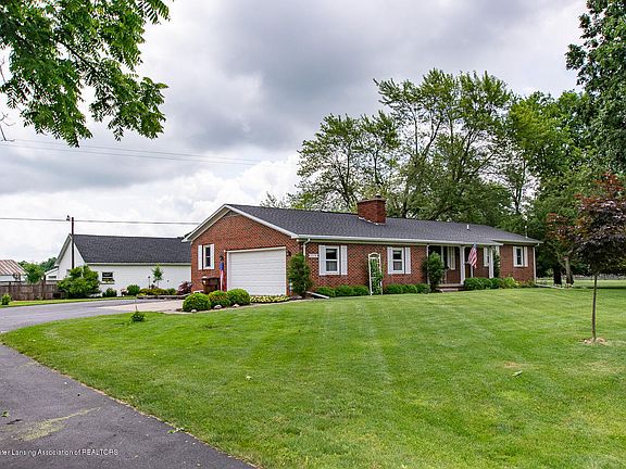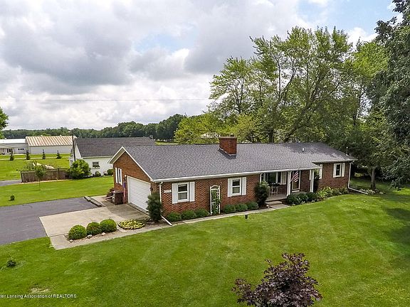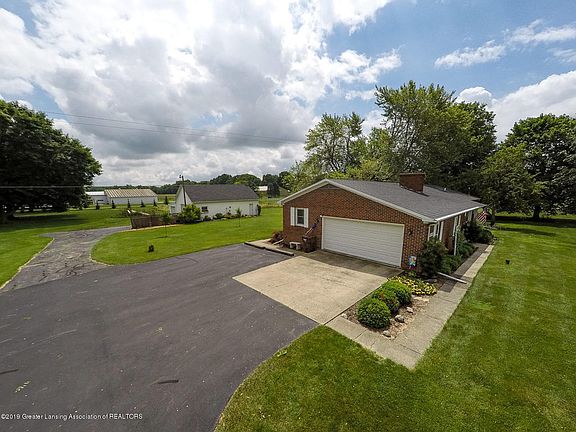Fantastic 3-bedroom ranch on 2.5 acres. Woodburning fireplace with brick surround in spacious living room. U-shaped kitchen with beautiful cabinetry and a bay window with seating; newer "laminate wood" flooring. Slider door from dining room to a large deck. Wonderful first floor laundry with sink and built-in countertop, cupboards and drawers; could be an office, craft room, etc. Half-bath off the back entrance. Three bedrooms, one with a ceiling fan and walk-in closet; has access to the bathroom with double sinks and granite countertop. Large basement with storage and lots of cupboards. Two fabulous pole barns: (1) 40x60 with concrete floor, electricity and 3 large doors (tons of storage), (2) 37x40 pole barn (with separate entrance to a "potting" shed) has a car hoist (lift), air compressor, generator, heat and electricity. 2 1/2 car garage with storage cupboards. Res. Items: Knife Rack in Kitchen and Mirror on BR door.