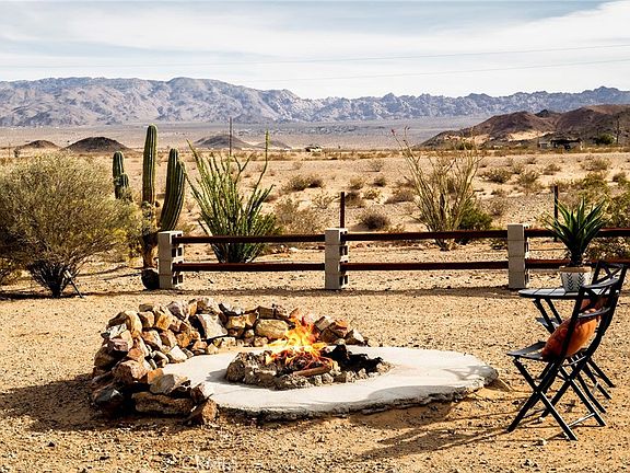 Stardust Retreat is a magical desert escape in the secluded Desert Heights neighborhood of Twentynine Palms. Conveniently located near Joshua Tree National Park, downtown Joshua Tree, and downtown Twentynine Palms, this fully furnished, successful short-term rental is tucked into the side of the Copper Canyon Mountains and surrounded by mature cacti. It offers privacy, serenity, and sweeping 360° views of the desert and mountains—all on 5 private acres.