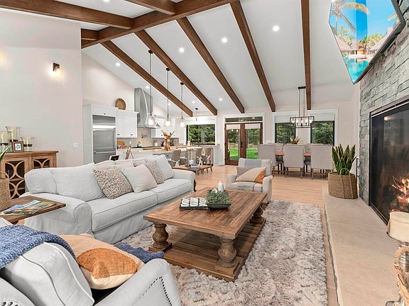 - Description: Floor to Ceiling Fireplace, Open, Vaulted Ceilings