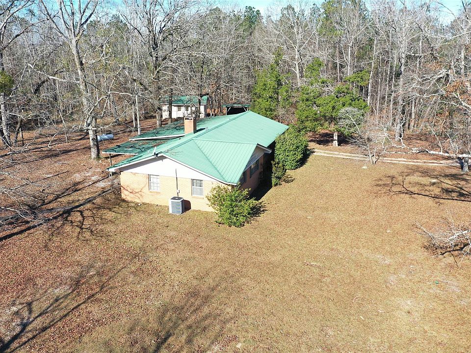 Secluded 3/2 Brick home nestled on 4.87+/- acres, outside the city limits. Kitchen, Breakfast area, Formal Living, Formal Dining. The Den has hardwood floors, propane gas log fireplace, and a sliding glass door to the covered patio. The fireplace can be converted back to a wood burning fireplace, if desired. 1-car carport. There's an attached storage room between the covered patio and carport. Concrete area with a Basketball goal. New propane water heater; Propane central heat. The driveway has a Legal easement. Utilities: Clarke-Washington EMC, Dickinson water, Thompson Gas, County trash pick-up ~~All photos are copyright protected and are the sole property of Kathy Brasell. Unauthorized use, distribution and/or copying are prohibited.~~