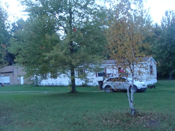 nice wooded 10 acre lot with manufactured home and garage not far from main roads and Standish but still have a country and setting