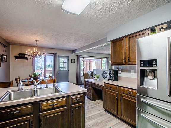 Looking for a quiet location with acreage? This updated home on 2.5 acres has a wonderful yard with privacy. Two floors-main level has kitchen/dining area, living room with wood burner, 3 bedrooms and 2 full baths. Lower level has rec room, additional living room, and office/work room. Great sunset views off of the front deck. 2.5 car garage. Small barn and pen area for small animals. Great home for the 4H family or pet lovers!