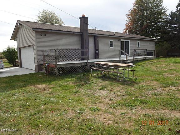 Ranch home on a large lot in the country. Front and rear wood decks, firmly integrated with the house, corner property, fireplace, all part of a nice home in Reeths Puffer Schools. Property has fruit trees. Make your appointment today!