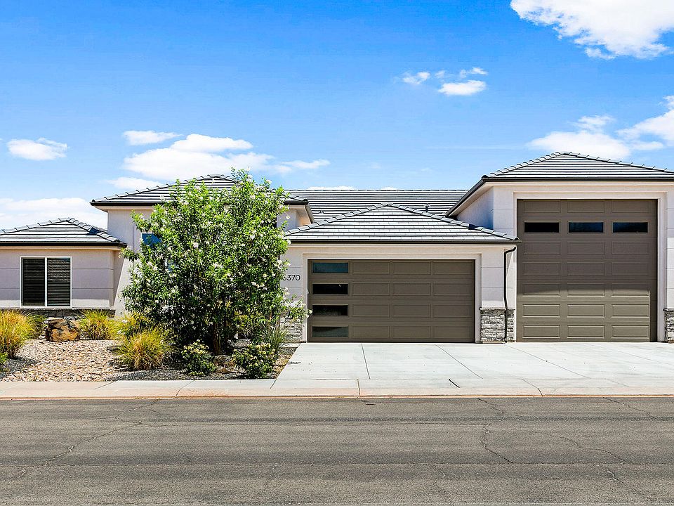 This incredible home offers a massive RV garage that is 17' wide and 59' deep! There is plenty of extra parking on the side of the house. Having been used exclusively as a 2nd home, the house is in like-new condition. The yard is fully fenced with block wall and metal gates. It's tucked away on a quiet street that is nearly flat as a pancake. The neighborhood is adjacent to Sand Hollow State Park. With its clear blue water, red sand beaches, and sweeping sand dunes, it is an oasis in the desert and soon to be your playground. A furniture package is available for purchase, as is the hot tub in the back yard. Please call for details or to set up a private showing. Make sure to ask about the low cost of electricity and Dixie Power. The fireplace and stovetop use propane.