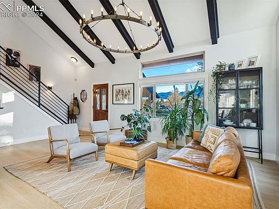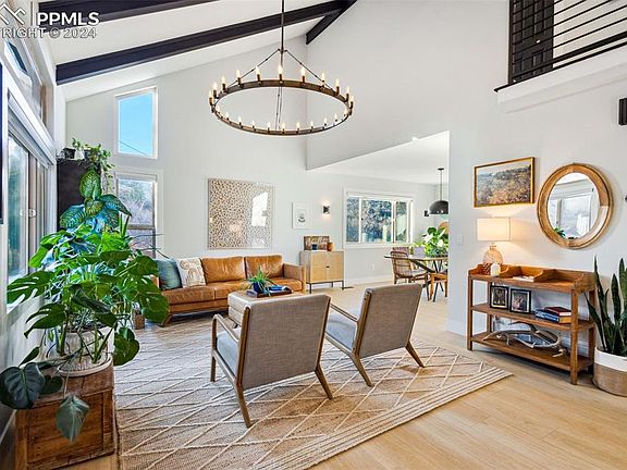 Superior details & exquisite finishes in this updated, contemporary 2-story stucco/brick home w/5BRs, 3BAs, & 2586 sf of comfortable living space. Situated on a serene, quarter-acre, corner lot, surrounded by open space w/low maintenance native landscaping that offers captivating views of the iconic Garden of the Gods. Enjoy Colorado sunshine from your covered front porch. An open floor plan provides the perfect balance of indoor/outdoor living spaces designed for entertaining, luxury, & comfort. Modern lights illuminate gorgeous luxury vinyl plank floors thru most of the home. The ML offers a magnificent Great Rm & Formal Dining Rm w/vaulted, beamed ceilings. Walk out to the backyard deck & witness glorious sunsets over Garden of the Gods! Convenient Kitchen access from the Dining Rm for easy food service & clean up. The Chef's Kitchen offers a skylight, counter bar, upgraded appliances, & abundant cabinets w/quartz countertops ensuring style & functionality. ML Powder Bathroom for guests. Cozy up on chilly nights to the electric FP in the Family Rm. Iron rails lead to the UL w/wall of skylights, 3BRs, 2BAs, & Laundry Rm. The Primary Suite has an adjoining private Bathroom. 2 more BRs (1 w/ a door for a future walk out, private balcony) share an updated Bathroom w/ vinyl floor, skylight, vanity, mirror, & tiled tub/shower. A custom barn door opens to the Laundry Rm w/ washer/dryer. The Basement features a 2nd Family Rm that walks out to an enclosed dog run for your furry friends. It also offers 2 addtl BRs (1 w/ double closets), great for private guest space. 2-car attached garage w/ door opener. Large, fenced backyard w/ natural landscaping, mature trees & shrubs, & multiple patio areas for outdoor enjoyment. Enjoy comfort, elegance, & convenience in this amazing home! Ideal location, close to dining, shopping, & entertainment in OCC & Manitou Springs, hiking/biking in Red Rocks Open Space & Garden of the Gods, & easy access to major highways, I-25 & Hwy 24.