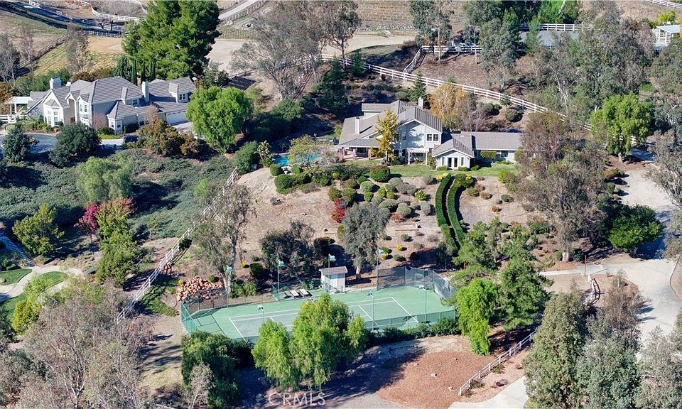 A rare opportunity to own a beautiful French County Estate in wine country! This 5-acre horse property is stunning! From the majestic views of Temecula’s countryside to the entertainment on property, this home has it all! The main house has upgrades throughout including plantation shutters, gourmet kitchen with granite countertops, island with additional sink, subzero refrigerator, double oven, water softener system, reverse osmosis, trash compactor, walk in pantry, solid oak cabinets with decorative licorice glaze, wood burning fire place, formal dining room, custom bathrooms, large master walk-in closet, office with wood burning fireplace and built in shelving, Italian plaster paint throughout the home, hardwood floors, ceiling fans and fixtures, laundry room with granite counter tops, game room, and a 300 bottle wine room. A must see! The swimming pool and hot tub area is the perfect place to host parties with family and friends. 3 car garage with epoxy floors and more storage cabinets. Also, a 220 outlet in garage convenient for EV charging. The barn has been converted into 2 separate living units which are fully renovated and ready for your guests. Also, an opportunity for long-term rentals. Downstairs includes 1 bed 1 bath with private patio. Upstairs includes 2 beds and 1 bath with a deck. Both have their own parking and shared laundry room. Permits for interior barn stucture build out is unknown. The tennis court is a popular place on the property with a tennis shed for storage, and a lounge with a horseshoe pit close by. The equestrian area includes a round pen, arena, 4 stall covered horse motel, and tack shed. Covered RV storage port. Gated entry with horse fencing around the entire perimeter of this property. Propane tank for main home and separate propane tank for the barn. This property has it all!
