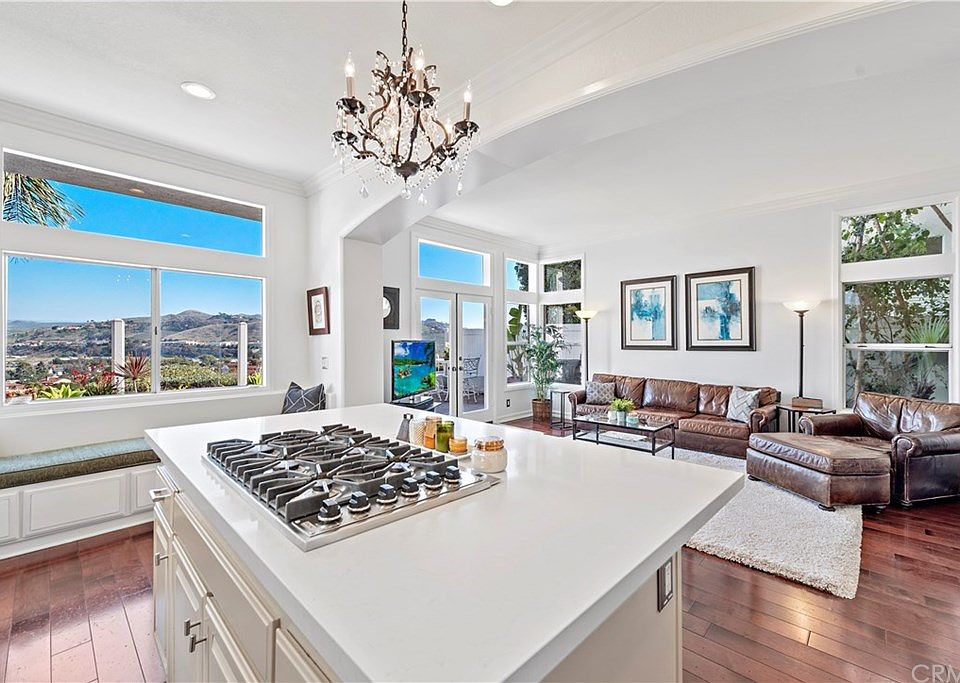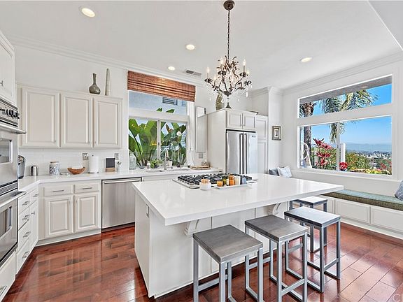 Amazing panoramic views of Dana Point and San Juan Capistrano Valley from this nicely located home on a single loaded street in the highly desired gated community of Hampton Hill. Great community that rarely has a home come to market because of the location, views and proximity to Dana Point Harbor and the Lantern District. There have only been 6 sales in the past 6 years. Short walk to Dana Point and San Juan trolley stops. The upgraded kitchen offers a large island with seating for five or six. Viking stainless steel appliances, stone counter tops and amazing views. Open concept layout with the kitchen open to the family room which opens up to the large back patio perfect for entertaining and enjoying endless views. Ample natural light flows throughout the home. There is a main floor guest bath, formal living room and easily converted fourth bedroom that is currently being used as a formal dining room. The spiral stairwell leads upstairs to the large master retreat. The master en suite has a double sided fireplace, soaking tub, glass enclosed shower, dual sinks, separate water closet and walk-in closet. The master balcony and bedroom offer the same amazing views as the back patio, kitchen and family room. There are two upstairs guest bedrooms with a Jack and Jill bath. Laundry room conveniently located on the upper level. Large bonus room could easily be converted to a second master bedroom. The over-sized garage with direct access offers plenty of storage for beach toys.