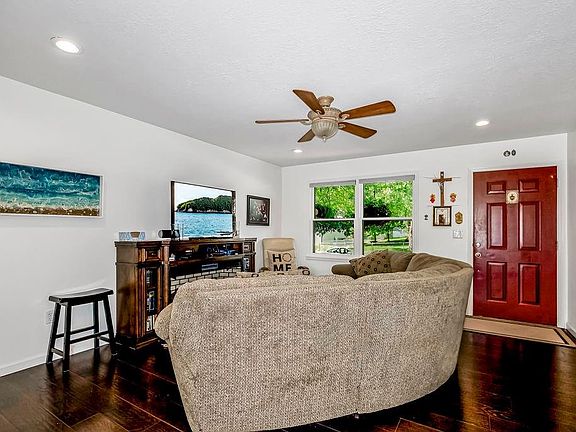 Back on market-no fault of seller! Larger than it looks from the street with a full finished basement! Beautifully updated ranch in the heart of De Soto with pride of ownership! Fresh custom kitchen with large butcher block island and coffee bar. Living room with fireplace that is open to dining area and kitchen with gorgeous luxury engineered hardwood flooring. Main level has three bedrooms, two baths. Lower finished level has large rec room, non-conforming 4th bedroom, office area and laundry with half bath. Big ticket items done with newer 3D composition roof (2016), HVAC (2022) and 50 gallon water heater (2022). Room for stackable laundry on the main floor in pantry if needed for one level living. Full attic for additional storage! Deck overlooks large treed and fenced yard with a feeling of privacy in the city. Close to award-winning De Soto schools, parks, and trails! Conveniently located off K-10 with an easy commute to Lawrence or the KC Metro.