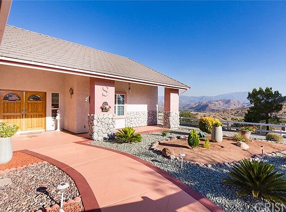 Stunning 3 bedroom, 2 bath, 2094 sq. ft., custom built single story, 2 acre ranch, with panoramic views, 3 car garage, covered RV parking, and a full workshop in Acton adjacent to the Starpoint Ranch tract. This breathtaking home makes a statement with a long circular driveway,impeccable landscaping, tons of curb appeal and attention to every detail. With sweeping panoramic views, a true custom workshop w/bathroom, and A/C, a covered RV parking area, built in BBQ, a solid covered patio, an above ground spa with pergola, and 2 full private acres, this is what Acton living is all about. The interior of this home has vaulted ceilings, a combination of laminate wood floors, carpet, and tile floors, a spacious kitchen w/ oak cabintery,center island, granite counters, an oven, microwave, pantry, and plenty of custom built-in storage. There is a formal living room, dining room, and great room w/fireplace and high vaulted ceilings w/ nice wood accents throughout and beautiful windows from every room. there are 3 bedrooms with good sized closets, built-in storage, solid wood doors, mirrored closet doors,cceiling fans, recessed lighting,an inside laundry room, and 2 baths including the master suite with separate tub and shower, dual vanities, walk-in closet w/ shelving system and tile floors and counters. Other features include a direct access 3 car garage, water filtration system, central vacuum, surround sound, and dual pane windows. This is ranch living at its finest.
