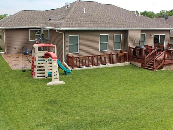 Exquisite 4 bedroom, 3 bath, ranch style house. Well maintained and stylish layout, with extras like ceramic and carpeted floors, cathedral living room ceiling, ceiling fans in living room, and four bedrooms, kitchen island, laundry with wall coat racks, stairway lights, recessed lighting, 200 amp electrical service, 40 gallon water heater, kitchen ceramic splash, master bath with walk-in closet, lots of closet and storage space, decorative concrete patio (basketball pole not included), deck, garden landscaping, 3 car attached garage, finished lower level with family room, rec or office area, open storage utility room, bedroom, full bathroom, and much natural lighting. Basketball pole with equipment, and window treatments do not stay.
