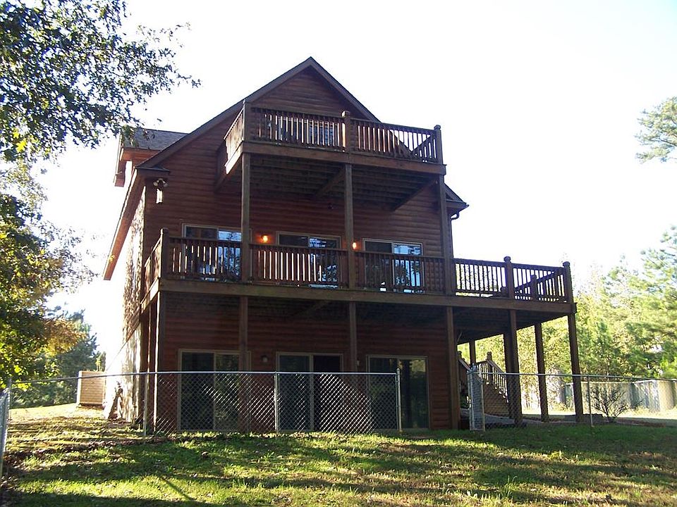 Modified A-Frame. Rustic in appearance w/log siding; comfortable inside w/open floor plan that offers main floor living w/kitchen, dining, living area open, master suite (bath offers shower, separate jetted tub, ceramic tile), laundry area. Triple sliders to wrap-around decking. Upper lever provides 2 guest bedrooms (one w/deck) & bath while lower level is unfinished and ready to be personalized. Includes deeded/assigned boat slip/storage unit in community boathouse and ample shoreline for launching canoe/kayak.