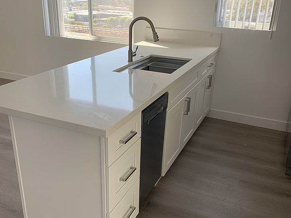 This unit is brand new, complete with stainless steel appliances, laminate wood flooring, spacious shower, large combo of living and dining area, brand new sound softening windows, window coverings, private patio with views, covered parking space, and brand new washer/dryer. Also located at the end of the alley so very private.