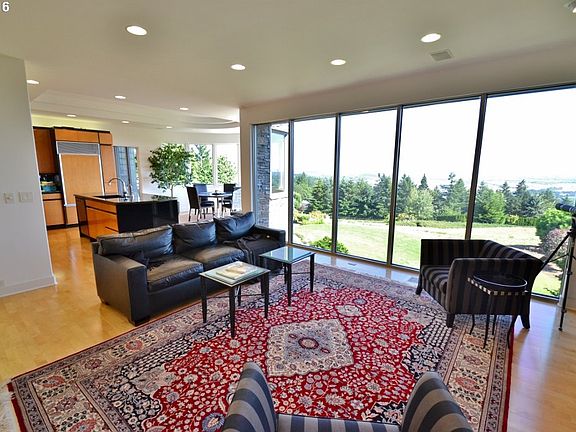 Set on 3+ acres this custom built home boasts floor to ceiling views of the South Willamette Valley. The property has great landscaping, stunning waterfall features, and a serene built-in hot tub to soak in the view. Inside, has views from nearly every room with natural light and vaulted ceilings. Enjoy your breakfast or coffee w/panoramic views, walk down to your wine cellar, cozy up with your 3 fireplaces, and roll in the 4 car garage