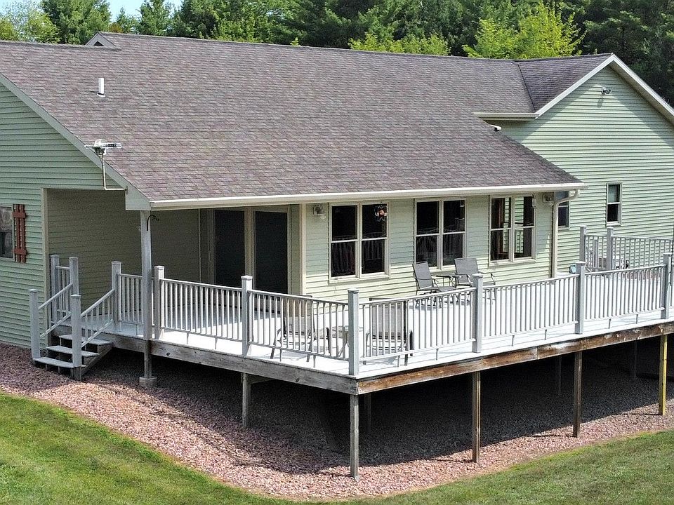 Custom built, one owner ranch home is just minutes north of Green Bay on over 7 beautiful maintained acres. The home features oak custom cabinetry throughout. The attached 3 car garage has access to the lower level. The huge 16'x47' composite wood deck, with an additional 10'x12' covered deck are great for entertaining while overlooking the spacious south facing back yard. Seller had made plans to build 2 extra bedrooms using the in place egress windows plus add a full bath in the partially framed/wired/stubbed lower level. A 50' x 80' insulated detached outbuilding with 10' ceiling, 4 - 9'x10' OH doors, furnace/AC, has room for multiple vehicles, toys and/or workshop. Seller will even consider selling the paint booth. An outdoor wood burner feeds both the house and the outbuilding