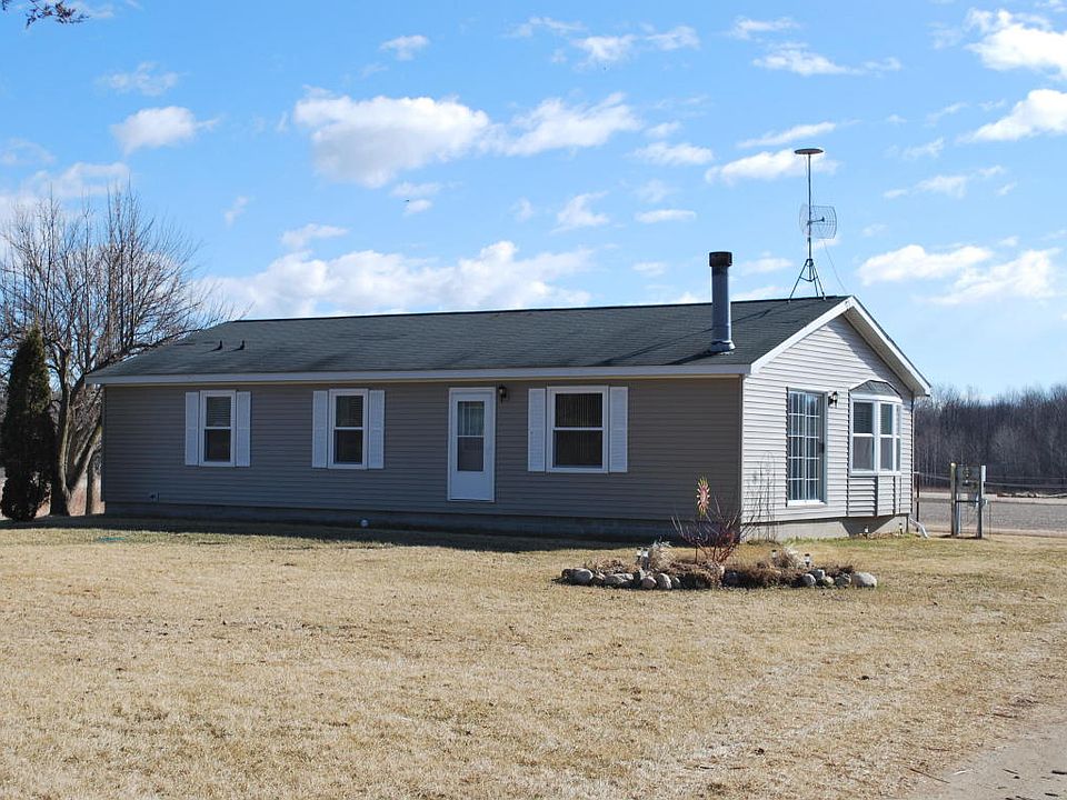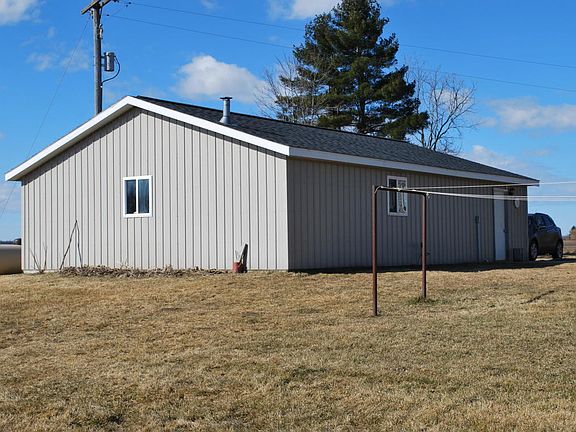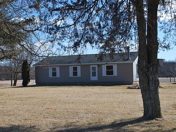 This very nice 3 bedroom, 2 bath home sits on a gorgeous country 5 acre parcel. The home has 6'' walls that are all drywalled and pine trim thruout. It has thermopane windows thruout. It is 28x48 in size. A beautiful wood burning stone fireplace accent the living room. You will want to check this one out if you enjoy country living.It has a huge pole building with cemented floor, 220 electric, heated and floor drains with a cemented approach. There is also a smaller barn that is cemented.