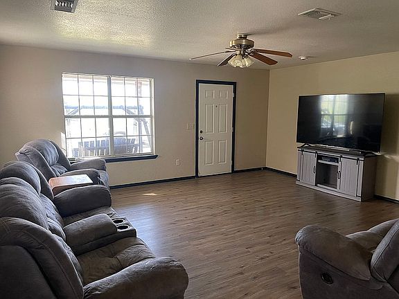 HILLTOP HOME... 3 Bedroom 2 Bath Brick home located East of Idabel on Shults Rd. Has a storm shelter just out the back door. New water resistant laminate flooring and fresh paint throughout the home. There are 2 hallway closets for storage. Pantry/storage in the dining room. Laundry room located just off the kitchen. One car attached garage. Circle driveway with plenty of parking and a concreted walk way to front door. 2 covered sheds. Weathered creek and metal bridge toward the back of the property. Property is partially fenced with chain link.