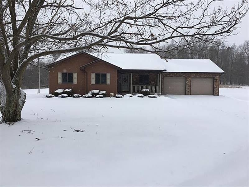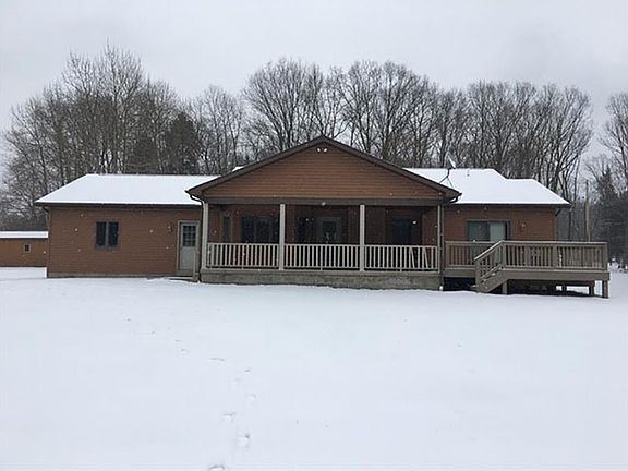 Your own private estate with this custom built 3 bedroom ranch home on 10 flat acres! Cozy living room with wood pellet stove. French door access to covered deck to watch the wildlife. Hickory cabinets with granite countertops in the kitchen with stainless steel appliances and breakfast area. Formal dining room with chandelier. Master bedroom with sliders to deck, large master bathroom and walk-in closet. Main floor laundry room. Large basement ready for family or game room. Oversized attached two car garage and storage shed. Charming front porch and expansive rear deck for entertaining.