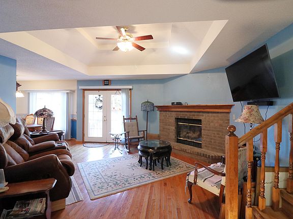 Lovely Split level 4 bedroom, 3 bath home! Living room has raised ceiling, gas fireplace, and hardwood floors. Basement has one bedroom, bathroom and living room with gas fireplace. Home features two skylights, one in entry and the second in the main bathroom, which allows natural light to filter through. Large deck with above ground pool and privacy fenced backyard! Don't miss out on this one!
