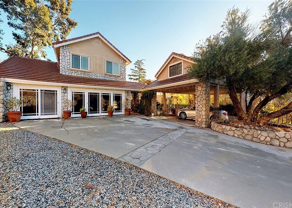 This gorgeous, custom, view home with a 6-car garage has everything you've been looking for! A long, private driveway will lead you up to this secluded haven, where you'll find the privacy you want on a 2.6 acre lot and 3,323 sq. feet of living space with luxurious accents throughout! Including a great yard to entertain in; complete with a heated pool, large spa, patio, pergola, lush landscaping, beautiful hardscaping, and a wrap-around courtyard with wrought iron fencing; there is also a gorgeous formal living room with marble fireplace, a family room with breakfast bar, plus a spacious entertainment room with built-in cabinetry, and a private office with separate entrance and built-in dual desks and built-in cabinets, the master suite has a built-in sitting nook, a large balcony that overlooks the pool, walk-in closet, a spa-like bathroom with double sinks. large soaking tub, and separate beautifully-tiled shower, there is also a large laundry room, a dollhouse, and a detached 6-car garage with a large loft, plus extra parking/storage space behind the garage with a panoramic view of Acton, plus a carport with an overhead, fully drywalled room. This home is on a paved road, and sits atop a very private setting, yet it's freeway close, must see to appreciate this beauty!!