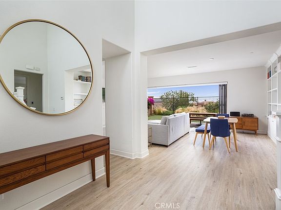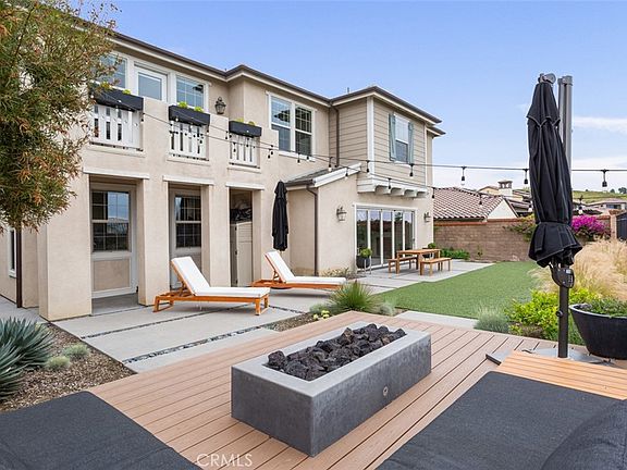 Sited on the view side of a quiet cul-de-sac, this pristine five bedroom, five bath home, is located in the highly desired private gated community of Pacifica San Juan surrounded by vistas of hills and ocean. Traditional architecture and classy exterior styling greet with beautiful curb appeal. A completely detached guest suite with a full bathroom, built-ins, and a walk in closet flanks the entry. Inside the main home, soaring ceilings and a +/- 15ft accordion door opens up to the rear yard which was curated by Landmark Designs and features a gas fire pit, elevated deck, string lights, turf, and views of the ocean. A floor-to-ceiling built in bookcase elevates the open plan which is perfect for entertaining. The kitchen features GE Monogram appliances including a six burner stove, a built in Kitchenaid refrigerator, a tankless instant hot water system and a large island with bar seating. A first floor bedroom suite sits on the rear of the home and opens to the yard. Upstairs, the oversized primary bedroom opens up to a private ocean view balcony with a view of Dana Point Harbor and houses a large walk-in closet, a lounge area, Kohler bathtub, a separate shower with floor to ceiling tile, and dual vanities. Two additional ensuite bedrooms and the laundry room with custom built-ins by Cabinets Plus round out the upstairs. This highly flexible ocean view home is only minutes to Dana Point Harbor, Doheny Beach and amazing downtown San Juan Capistrano.