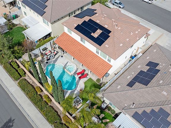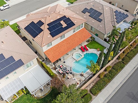 Completing this magnificent offering is an attached 3-car garage, providing ample storage and parking solutions. Whole house fan & 29 Solar panels provide ample power Solar lease 24 year lease left $275 a mo. Its prime location near top-rated schools, shopping, dining options, and easy access to the 15 Freeway, places this home in a league of its own, embodying luxury living at its finest.
