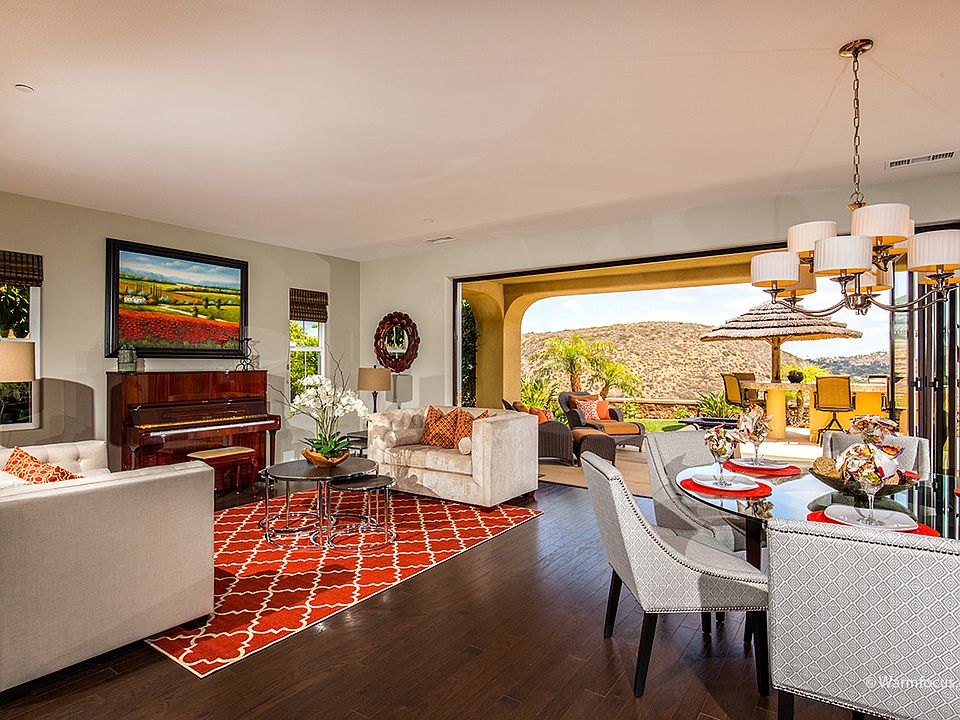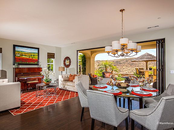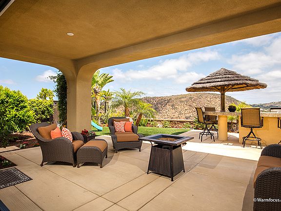 Seller will entertain offers between $1,250,000-$1,350,000. This stunning family home is located in the prestigious community of La Costa Oaks situated on the edge of a canyon preserve, with phenomenal, unobstructed canyon views and a peek at the ocean. No detail was overlooked in this 3,511 square foot home featuring 4 bedrooms, 4.5 bathrooms, 3-car garage, plus office and bonus room! Inside, the family room boasts a double-sided fireplace, dark stained hardwood flooring, and features an upgraded chefs' kitchen with custom backsplash, under cabinet lighting, granite countertops, stainless steel appliances, oversized island/breakfast bar and walk-in pantry. There is also a private guest suite on the first floor. Head into the separate living and dining room and you will find the impressive wall-to-wall panoramic-style doors showcasing the stunning views as you walk out to a covered loggia. Rear yard features a fully equipped BBQ Island/bar with palapa, water-wise yard with mature fruit trees and herb garden. The second floor features a private master suite with expansive views, gas fireplace, spacious jetted tub, large walk-in shower, custom countertops, and his and hers walk-in closets with custom built-ins. Completing the upstairs you will find an office (which can easily be converted to a 5th bedroom, if needed), and two more bedrooms (each with their own private bath and walk-in closets). A great bonus room and a well-equipped laundry room with ample storage and a utility sink finish off the upstairs. This rare canyon home is located in the top-rated San Dieguito Union High School District, and offers easy access to beaches, brand new shopping centers, parks and highways. The desirable La Costa Oaks community features resort-style living at your own home plus amenities which include upscale clubhouse, 2 swimming pools, workout room and abundant nearby hiking trails. Don't miss this rare opportunity!