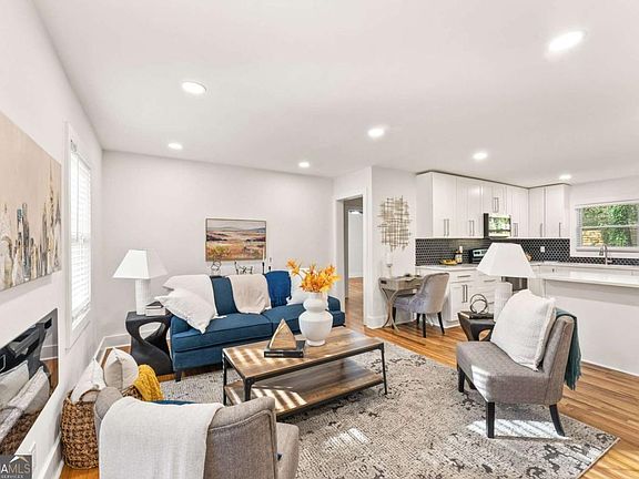 Welcome home to this beautifully fully remodeled 3 bedroom / 2 bathroom ranch in the heart of Decatur, where virtually everything is brand new and thoughtfully updated for modern living. A charming covered front porch offers a warm welcome and sets the tone for what awaits inside. Step into the open-concept living spaces, highlighted by hardwood floors, accent walls, and a fireside family room that flows seamlessly into the dining area-perfect for everyday living and entertaining. The brand new kitchen is the heart of the home, featuring crisp white cabinetry, stone countertops, a center island with seating, and a full stainless-steel appliance package, all designed with both style and functionality in mind. The primary suite is a relaxing retreat with vaulted ceilings and a spa-like ensuite bathroom showcasing double vanities and a sleek glass-enclosed shower. Two generously sized secondary bedrooms share a beautifully renovated full bathroom in the hall. Outdoor living is just as inviting with a spacious rear deck overlooking the fully fenced backyard greenspace, ideal for gatherings, pets, or quiet evenings at home. Additional upgrades include a new roof, new gutters, new driveway, new electrical system and panel, new water lines, new hot water tank, and a new gas connection for the HVAC system, offering peace of mind for years to come. A large crawl space provides excellent storage options. This move-in-ready Decatur gem blends timeless charm with modern upgrades-don't miss the opportunity to make it yours.