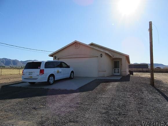 Newer 2006 site built home on 1.17 acre*** Fully fenced with RV parking*** 3 bedroom, 2bath home with 2 car garage*** covered patio*** 10'x12' separate storage shed*** Lovely home***All electric***Ceramic tile flooring throughout the home*** Ceiling fans in most rooms*** Neutral interior & exterior paint colors***Living room has pot shelves & large view window for extra natural lighting*** Kitchen includes: quality cabinets, electric stove, microwave, dishwasher, cam lights, granite surface countertops, separate dining area w/sliding glass doors the go to the covered patio*** Large master suite with walk-in closet*** Master bathroom has marble walk-in shower. Walk-in closet in one of the guest bedrooms too*** This home is very conveniently located with-in 25 minutes to the river, lake & casinos*** Only 1/3rd mile off paved road*** connect to public water & electric*** only 6 miles to down town Kingman .. This property has gorgeous mountain views.. Looking for serenity? Here it is and you are still close to town.