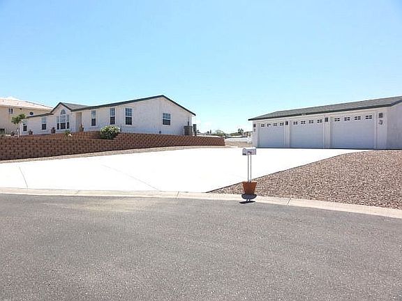 Located on a quiet cul-de-sac in Sunridge Estates! Beautiful factory built doublewide 4 bed, 3 bath built in 2005 w/2,224 sq feet of living space. Open floor plan w/ceiling fans & window coverings throughout. Kitchen island, pantry, refrigerator, electric smooth top range-oven, microwave & dishwasher. Master bath w/garden tub & separate shower. Landscaped front & back w/wonderful panoramic views to include mountains/casinos. Detached 3 car garage with RV parking on the side. 2010 Annual taxes $1,421.42. NO HOA dues Call Kevin Barbarita Toll Free (888) 311-9538, (702) 420-9321, email kevinbarbarita@aol.com or visit http://www.laughlinnevada.net for more information. Property listed by Barbarita Realty Consultants.