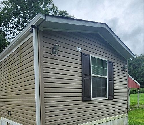 This home was built in 2012 and has 3 bedrooms and 2 full bathrooms. The home offers an open concept with the living room and Kitchen. The owner is leaving the range, Refrigerator, dishwasher, washing machine and dryer. The laundry room is just off the kitchen for convenience with room for a walk in pantry. The home has a split floor plan with 2 guest bedrooms on one end with a shared full bath. Owner's suite is on the opposite end with Full bath that features a garden tub, and walk in closet. Also included is a front deck with a wheelchair ramp, and fiberglass steps for back door access. New metal roof in July of 2023. Mobile home MUST be moved.