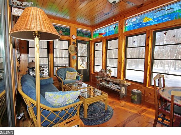 Home has much to offer. 4bd,2bath,2.5acres,275'lake frontage w/sand beach.Quiet lake w/wildlife,loons,great fishing among water skiing.Fenced in garden surrounded by established vegetation,fruit trees and bushes,rhubarb,grape vines w/arbor. Beautiful views from the lakeside sunroom and 3 season porch. Home office connected to heated 2 car garage. A must see in a great location!