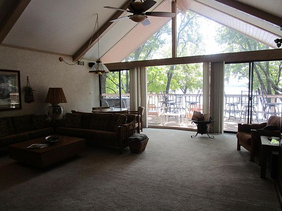 Location-Location-Location. This 5 Bdrm Waterfront has it. A gentle slope, great Duck Creek Views to the South,nice trees, protected dock, enclosed 22' slip, 45' slip , 2 see -doo lifts (cost 6,000).easy access, great fishing. A one-level plan w/ Lg great rm., open kitchen, Lg master suite, lots of storage, storm shelter, Lg redwood deck, gazebo,New roof 7 -8 yrs ago , 2hot water tanks. Furnished. Selling as is.