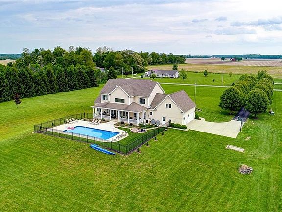Come see this fantastic, custom-built beauty on 5 acres in Cedar Cliff Schools! With a tree-lined approach, and a beautiful porch, you are welcomed in to the open entry. Recently refinished hardwood flooring throughout. Nice! The formal dining room lies to the left. The entry leads to a 2 story great room, complete with fireplace and built-ins. A wall of windows provides beautiful views. An open breakfast area adjoins the well-appointed kitchen. Tons of cabs and counterspace here along with a huge island. Down the hall, a gracious first floor master suite awaits. Plenty of room with a big walk-in closet and spacious bath. Upstairs you'll find very large bedrooms, a library area with balcony view, and a huge bonus room! A massive walk-out basement is ready for finishing. Outside, enjoy entertaining friends and family from your covered patio and inground pool. Beautiful views of the acreage! New carpeting, updated HVAC and new roof scheduled. This one has it all! Hurry!
