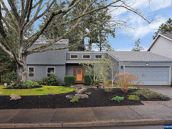 Croisan Hills Beauty! NW style home on a peaceful,woodland LG corner lot. Vaulted ceilings, windows galore&abundant natural light! Spacious living area & remodeled elegant kitchen w/gorgeous wood cabinetry, granite counters &SS appliances.Cozy office, large LR w/fireplace, LG lower level w/2 bdrms&fullbath. Upper level primary suite w/full ba, sitting area w/fireplace.Loads of storage too!Beautifully landscaped, pretty backyard w/multiple decks, top schools, close proximity to Nelson & Minto parks&hospital.